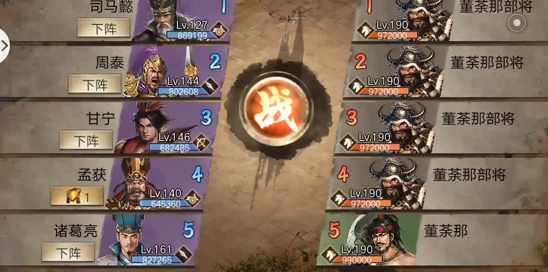 董荼副本的机制较为特殊,需注意NPC携带战车和护盾特效。讨伐董荼活动开启后,营寨出现在国都旁,玩家可派遣满血或残血武将攻击,每次攻击有概率获得888888经验或鞭笞道具。鞭笞董荼可额外获取经验、宝石或国宝(如练兵符、虎豹骑影子)。战斗时需优先破坏NPC战车护甲,例如使用司马懿反制战法,或周泰携带方圆阵拼掉主将战车。若配置不足,可尝试低配打法,如用曹操霸下套装为后续武将提供血量加成,或依赖貂蝉魅惑控制战局节奏。