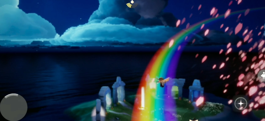 站在彩虹桥上是一个极具视觉冲击力的打卡方式,但需要掌握特定的技巧和位置信息。首先需要明确的是,彩虹桥位于晨岛神殿上方的云层中,从遇境进入晨岛地图后,朝着神殿右侧最上方的云层持续飞行即可找到。这个位置需要玩家拥有足够的光之翼数量来支撑飞行高度,建议至少收集50个以上光之翼再尝试前往。彩虹桥从下方观察是透明的,只有在飞到其正上方时才会显现出完整的彩虹效果。