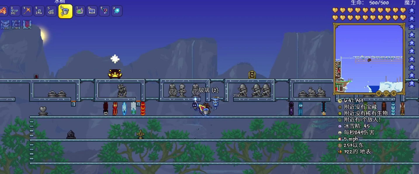 装备系统是角色成长的关键路径,不同武器类型对应独特的战斗风格。近战武器如剑类适合正面交锋,长矛提供穿透攻击,回旋镖则兼顾远程能力;远程武器中弓弩依赖弹药选择,枪械类武器如迷你鲨适合持续输出;魔法武器消耗魔力但效果多样;召唤类武器可提供额外火力支援。装备词缀如增加攻速或暴击率的属性需根据职业特性选择,重铸系统可优化装备属性但需消耗金币。