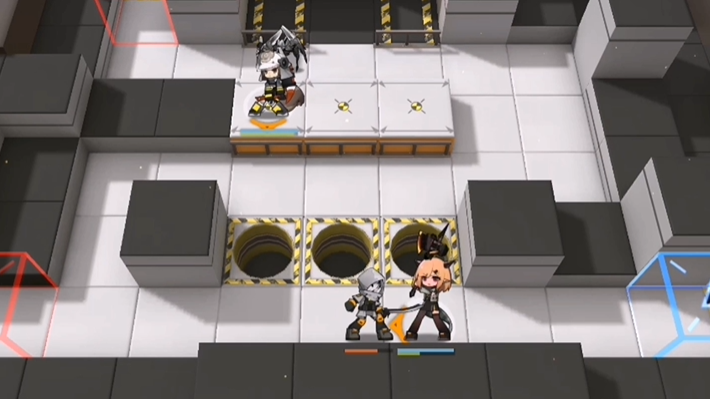 整个关卡最考验操作和时机的部分来了,那就是阿消技能释放的准确时机。你一定要耐心等待敌人走进阿消的攻击范围,并且刚好走到坑洞边缘的时候,再开启她的推人技能。这个时机需要练习一下手感,放得太早,技能浪费了敌人还在安全区域;放得太晚,敌人已经走过去了,就推不下去了。理想的情况是看到敌人的脚尖快要悬空、身体微微前倾的那一瞬间按下技能,这样就能稳稳地将它推下悬崖。关卡中会有移动速度很快的磐蟹,对付它们时机更要精准,如果失误没推下去,要立刻依靠杰西卡的远程攻击快速削减其血量。