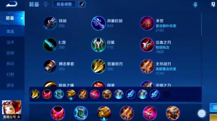 要想打出最高伤害,常规的六神装推荐顺序是:开局先出急速战靴,它提供30%攻速加成,价格便宜,能让鲁班更快触发被动清线发育;第二件选择闪电匕首,它增加40%攻速和10%暴击率,配合被动扫射可以快速消耗对手;第三件是无尽战刃,这件装备是伤害质变的关键,提供高额物理攻击和暴击伤害提升,让鲁班的中期团战爆发力十足;第四件出泣血之刃,提升100点物理攻击和25%物理吸血,增强续航能力;第五件是破晓,作为射手的终极神装,它提供攻击、攻速、暴击和物理穿透,专门用来对付敌方前排坦克;最后一件装备选择破军,它大幅增加物理攻击,被动效果对低血量敌人造成额外伤害,非常适合收割残血。这套出装的核心是围绕攻速和暴击,确保鲁班的被动扫射能持续触发,尤其是破晓和破军的组合,能有效击溃敌方英雄。